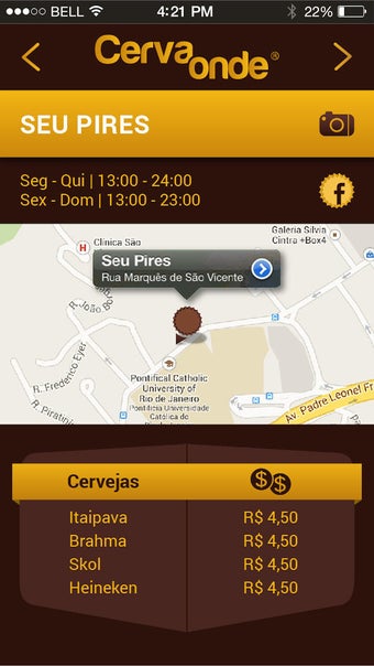 Apesar da boa ideia, o app infelizmente só tem uma grande lista de bares na cidade do Rio de Janeiro. Em testes, Belo Horizonte, Brasília, Fortaleza e São Paulo mostraram menos de 3 lugares cada.